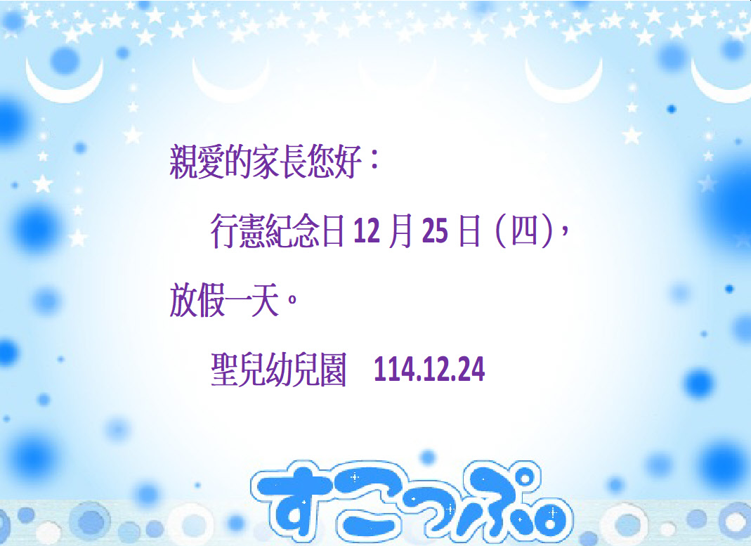 聖兒幼兒園【行憲紀念日】放假通知