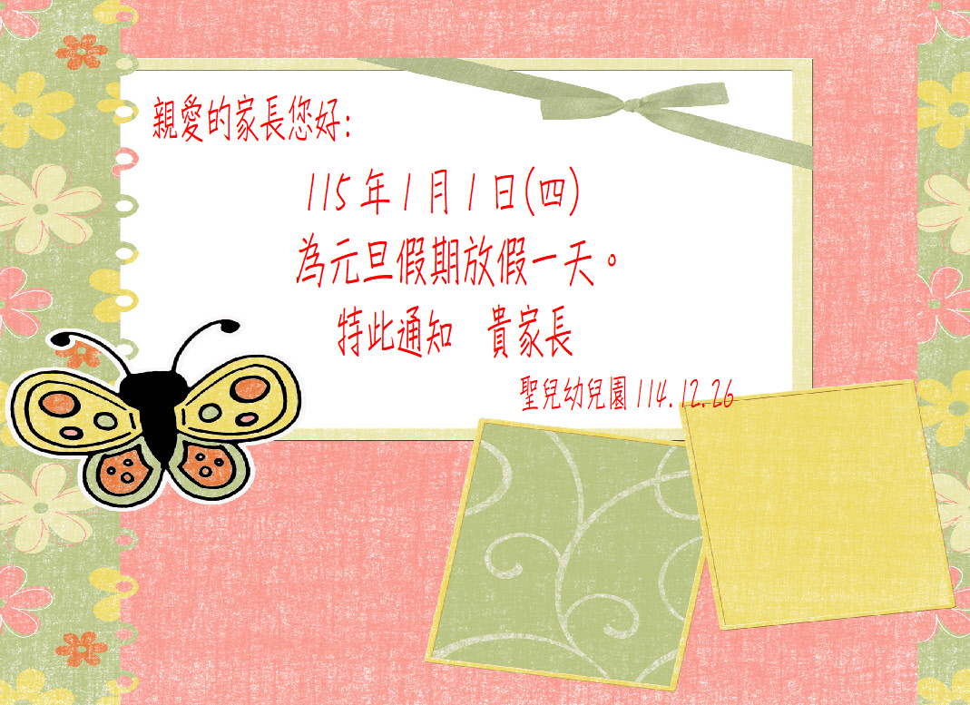 聖兒幼兒園【元旦】假期放假通知